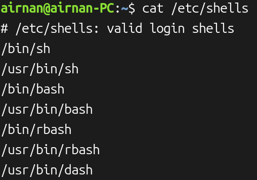 cat /etc/shells