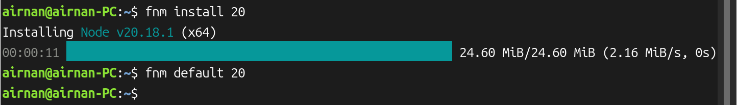 fnm install 20使用如下命令设置默认版本: