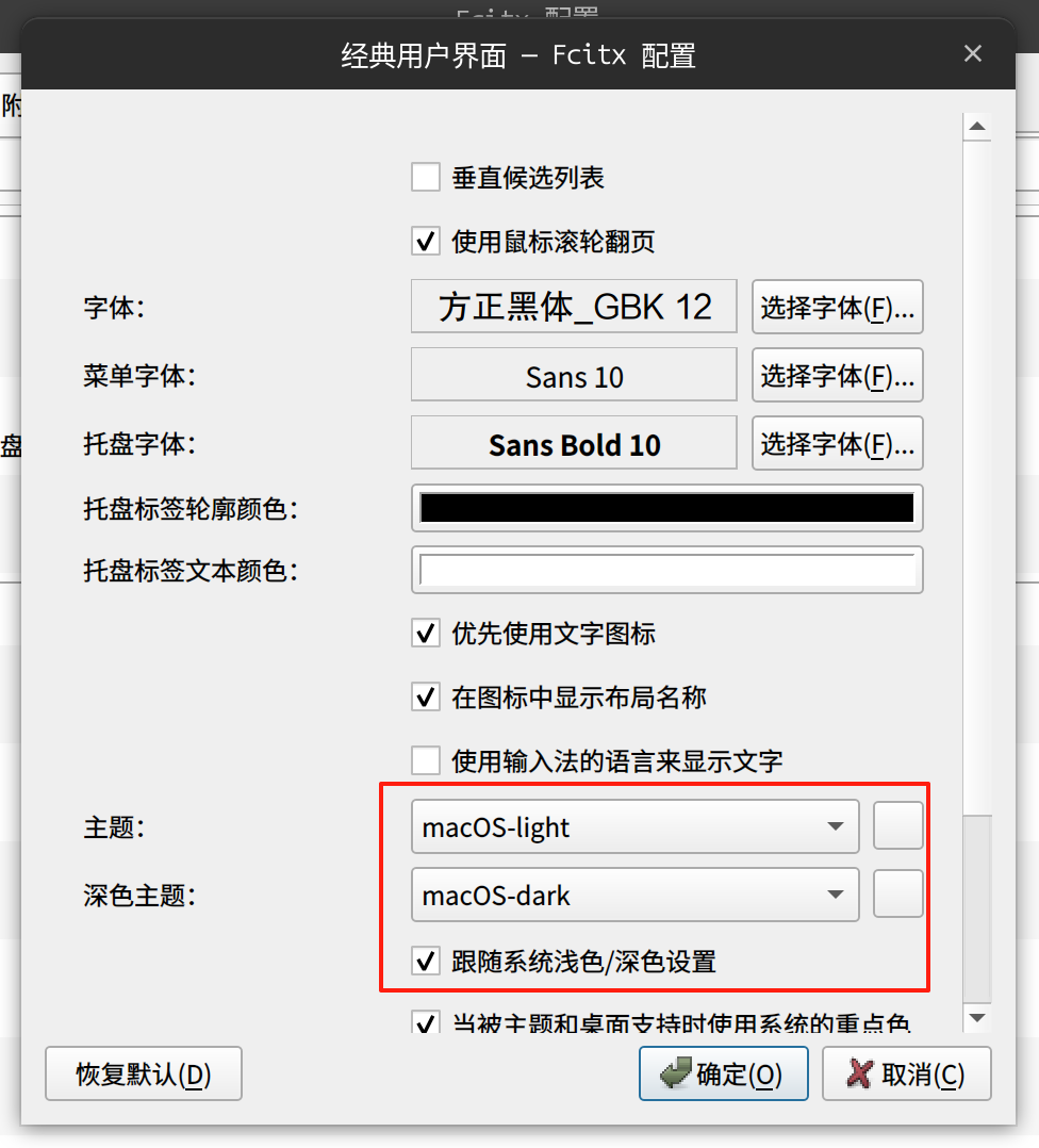 这里我使用的是仿macOS皮肤:https://github.com/thep0y/fcitx5-themes-candlelight?tab=readme-ov-file