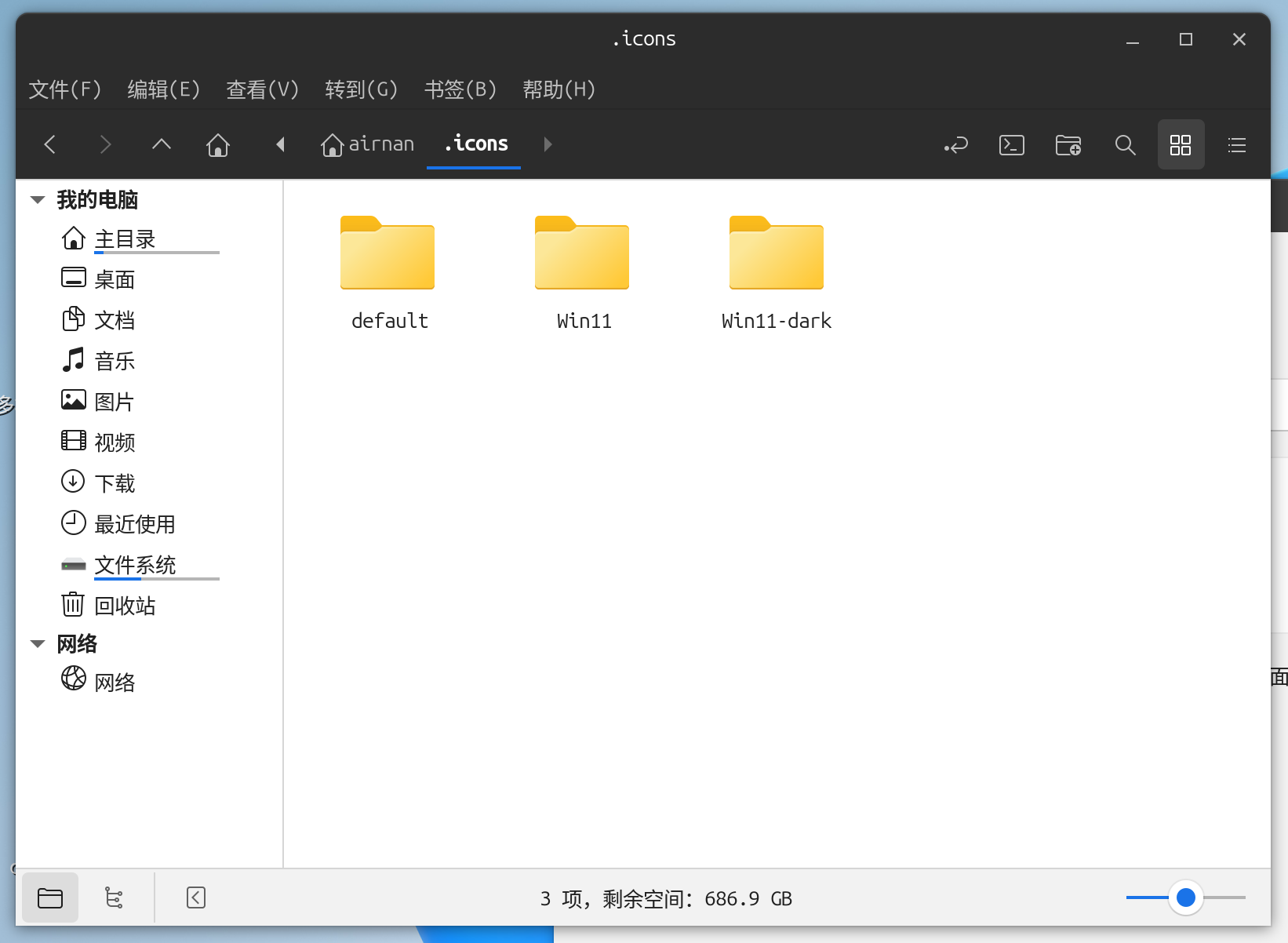 图标存放在用户目录下的.icons 文件夹中:
