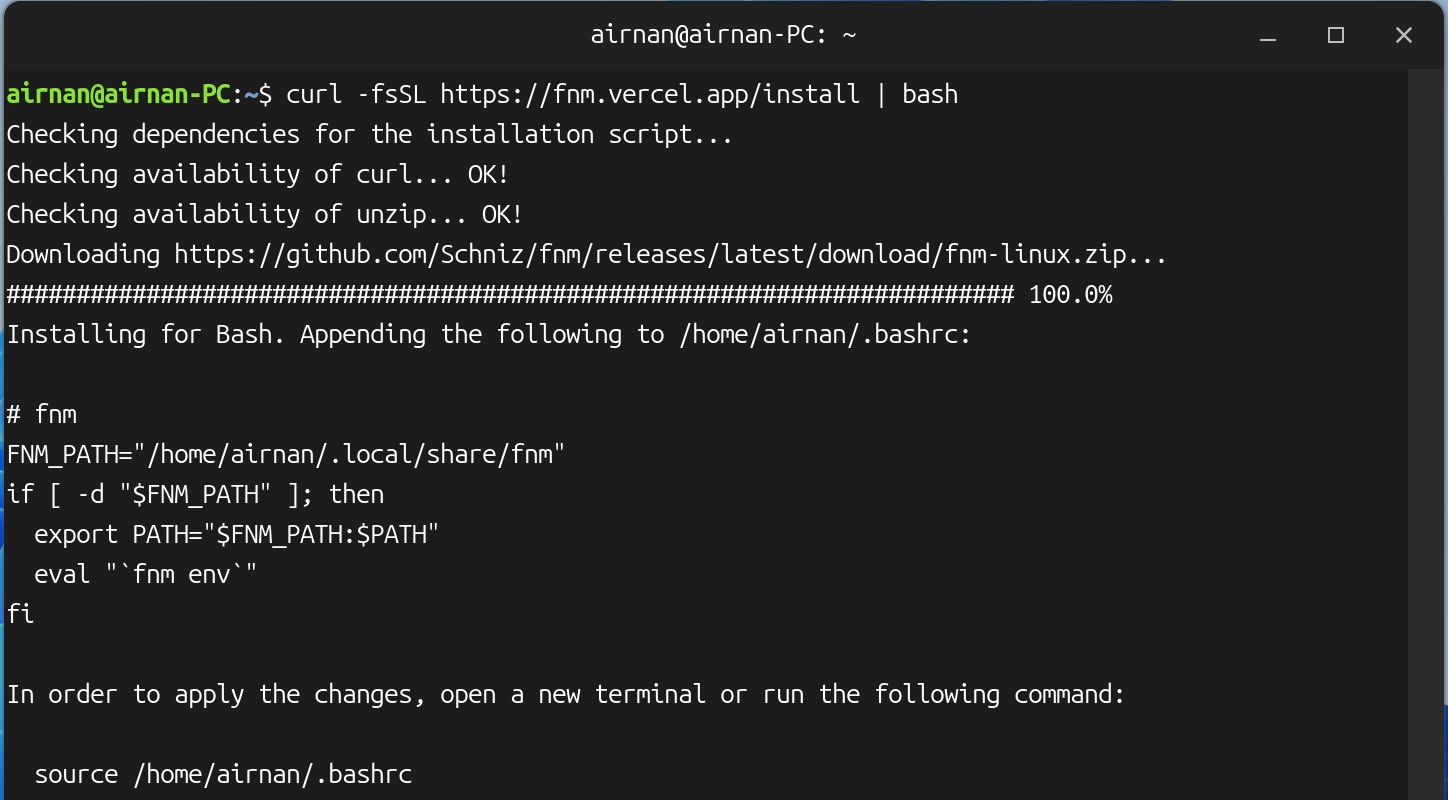 curl -fsSL https://fnm.vercel.app/install | bash安装完成后会自动添加环境变量: