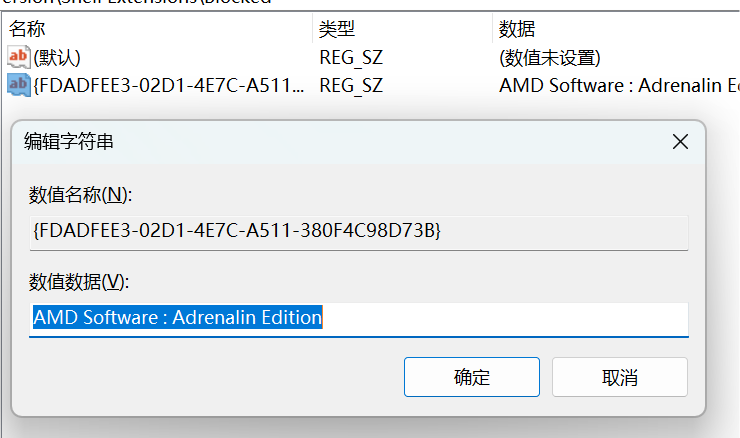 前往注册表HKEY_LOCAL_MACHINE\SOFTWARE\Microsoft\Windows\CurrentVersion\Shell Extensions ,右键Shell Extensions创建文件夹Blocked ,在Blocked 右侧新建字符串值 ,重命名为刚刚查询到的产品ID,右键修改数值数据为:AMD Software : Adrenalin Edition ,操作完成即可立即生效。